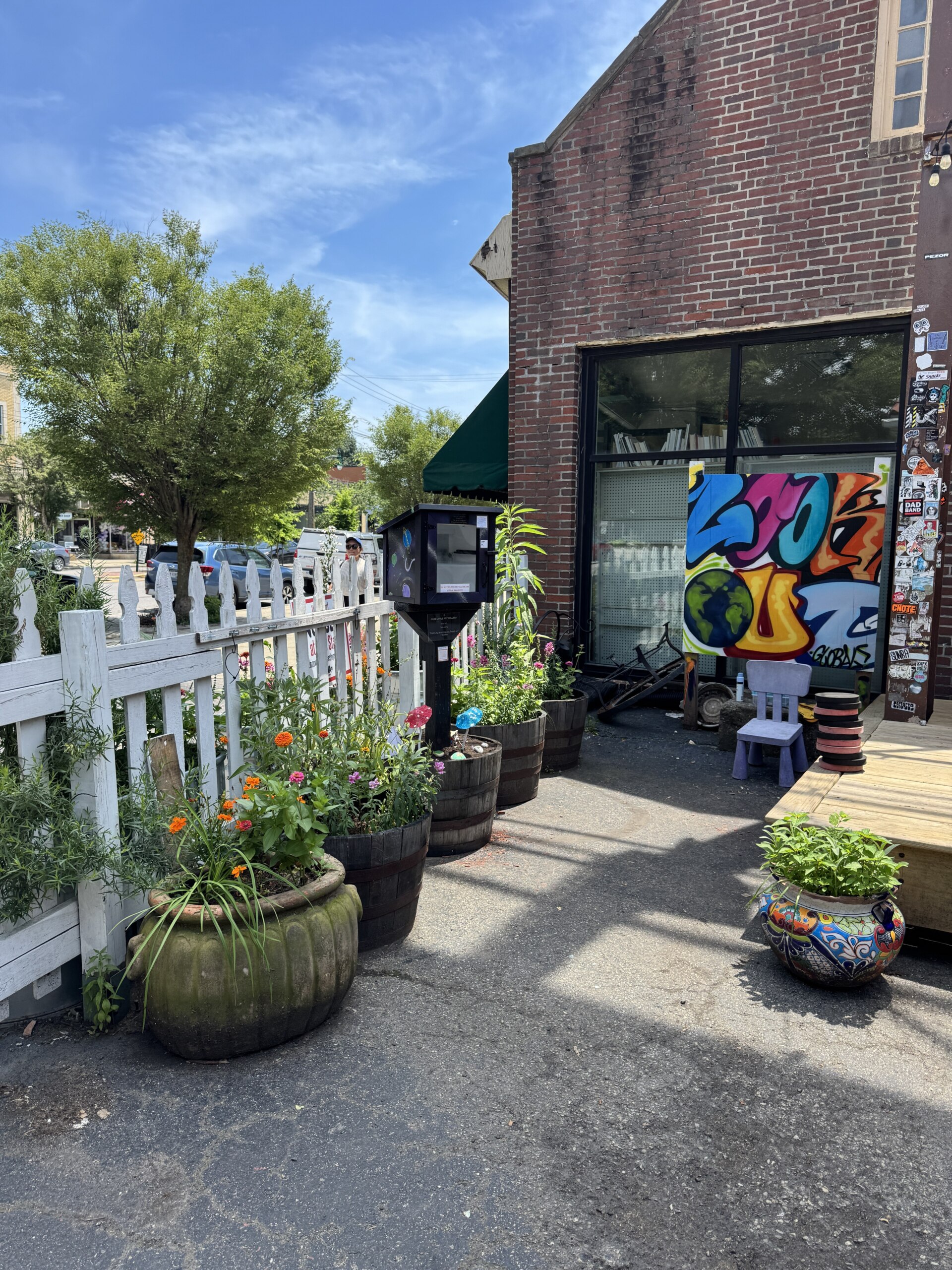 The quest begins when you enter the art gallery fence. Since the name of the cache says “free books”, you will see a colorful display before your eyes. Finding cache containers requires a shift in mindset: move away from the obvious, refocus on the search, and let your geocaching instincts take over. What seems out of place?